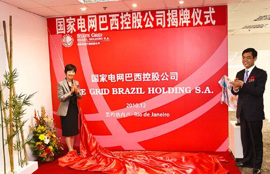 國家電網(wǎng)公司副總經(jīng)理舒印彪,國家電網(wǎng)國際發(fā)展有限公司總經(jīng)理孫金平、中國駐里約總領事陳小玲、國家電網(wǎng)公司有關部門和單位的領導、國家電網(wǎng)巴西控股公司巴西員工代表,以及中國國家開發(fā)銀行巴西工作組、中石化巴西公司、南非標準銀行、PN律師所、匯豐巴西銀行、羅蘭.貝格等公司代表參加了儀式。舒印彪副總經(jīng)理和陳小玲總領事共同為國家電網(wǎng)巴西控股公司揭牌。