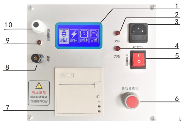 氧化鋅避雷器直流參數(shù)測試儀面板介紹