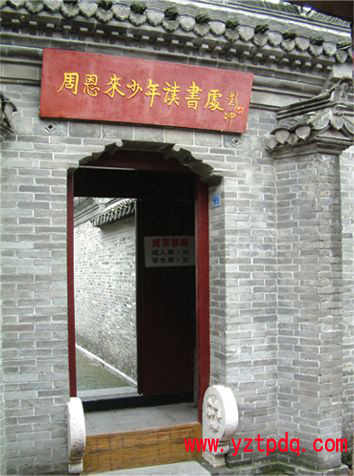周恩來少年讀書處位于揚(yáng)州市寶應(yīng)縣城水巷口3號(hào),原為周恩來外祖父陳沅的宅第。整個(gè)建筑為明清風(fēng)格,占地700平方米,建筑面積500平方米,共有房屋十八間。讀書處人門朝北,門樓古樸莊重,門楣上方是原全國(guó)人大常委會(huì)副委員長(zhǎng)彭沖親筆題寫的“