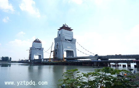 萬福大橋橫跨淮河入江水道主河道廖家溝,全長(zhǎng)664米,主跨188米,是我國(guó)首座塔梁古建相結(jié)合景觀橋,也是揚(yáng)州城市地標(biāo)性建筑。主橋?yàn)殡p塔自錨式懸索橋,橋型融現(xiàn)代美與古典美于一體,總體風(fēng)格為亭臺(tái)樓閣,設(shè)計(jì)獨(dú)特新穎,造型古樸典雅,與揚(yáng)州城市歷史悠久、文化燦爛的厚重氣質(zhì)相得益彰。萬福大橋是我市一座觀光平臺(tái)。登上塔樓俯瞰,南面的長(zhǎng)江和夾江,北面的邵伯湖和高郵湖,壯闊的江淮生態(tài)大走廊一覽無余;江都老城和揚(yáng)州古城,廣陵新城和生態(tài)科技新城也都盡收眼底。如果天氣晴朗,長(zhǎng)江對(duì)面的鎮(zhèn)江市的高山也可以看到。