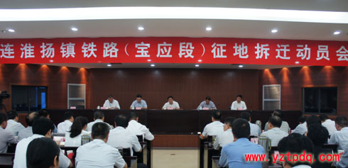 為加快連淮揚鎮(zhèn)鐵路(寶應(yīng)段)建設(shè)步伐,保障項目順利實施,9月30日,江蘇寶應(yīng)縣委、縣政府專題召開連淮揚鎮(zhèn)鐵路(寶應(yīng)段)征地拆遷動員會。縣委副書記、代縣長王逍霄在會議上要求,要圍繞“高”、“嚴(yán)”、“快”三個字,做好征地拆遷工作??h委常委、常務(wù)副縣長張偉主持會議,副縣長閆偉參加,市鐵辦主任尹建平、中鐵十九局集團(tuán)連淮揚鎮(zhèn)鐵路項目指揮長劉宏圖應(yīng)邀出席會議。