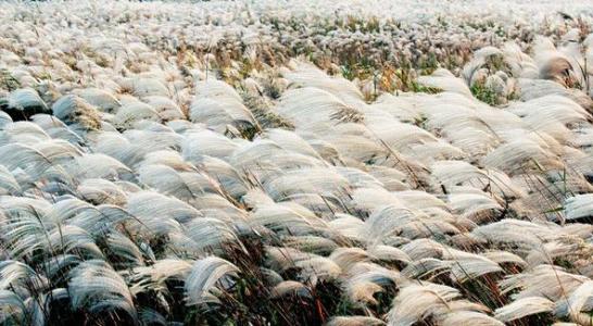 實(shí)際上,荻的花期和果期是8-10月,現(xiàn)在看到的白絨絨的花,其實(shí)是它的種子以及柔毛。